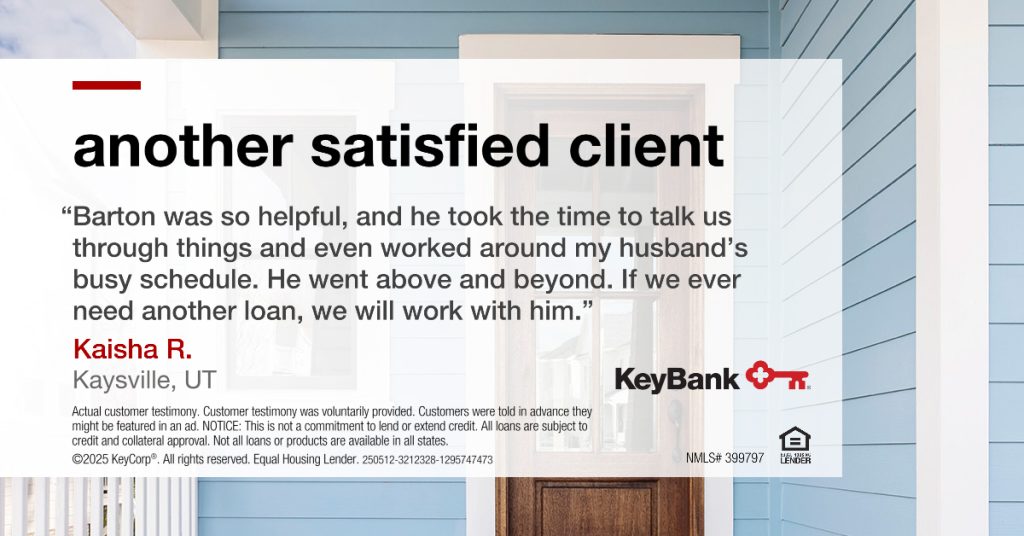 - “He went above and beyond. If we ever need another loan, we will work with him.” — Kaisha R., Kaysville, UT (wife of MD)