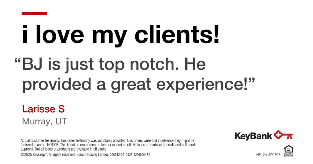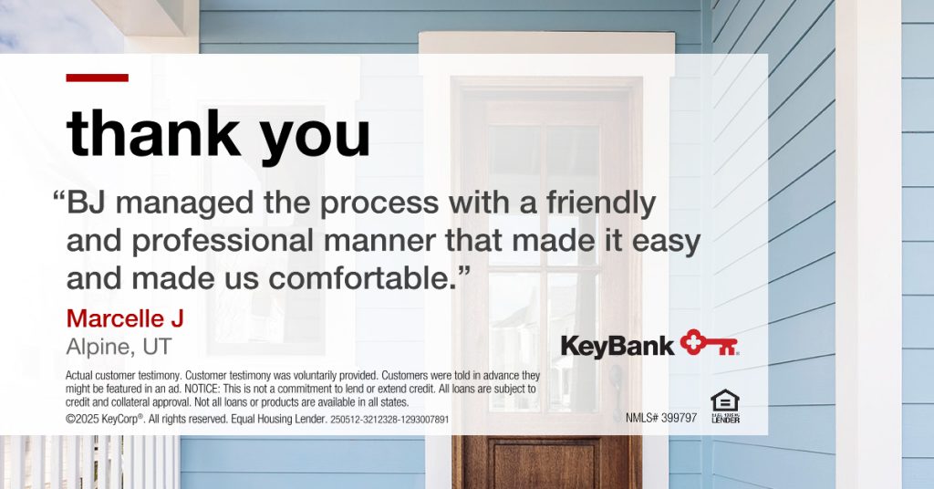 In 2011, I partnered with KeyBank, a lender that shares my commitment to delivering exceptional client service and competitive mortgage solutions. KeyBank has established itself as a market leader in mortgage lending, with innovative programs designed to serve a wide range of clients — including specialized physician loan programs and tailored options for emerging affluent professionals. We proudly serve clients across much of the United States, with a strong focus on the Utah market.